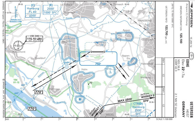 Die Kontrollzone EDDH muss unter allen Umständen respektiert werden, ebenso die Lufträume C und D Hamburg.