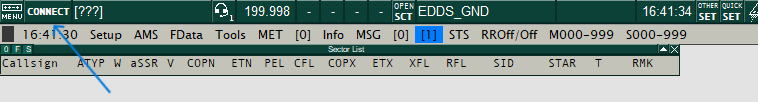 - When all loaded and you are in EuroScope, click on the ,,connect" button on the upper left of your screen.